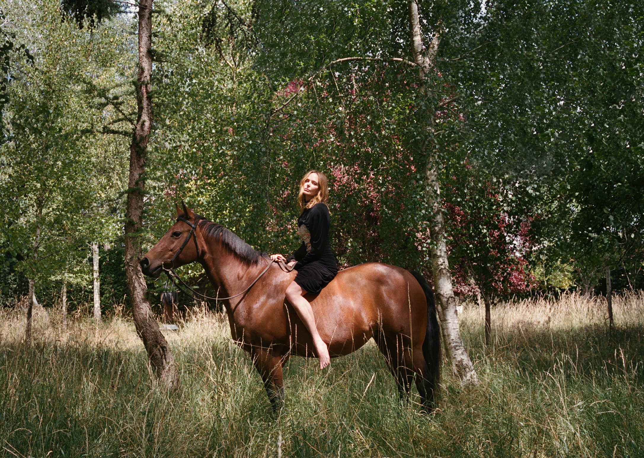 “This is my equine therapy — in nature, on my organic farm on my horse, Chocolate."